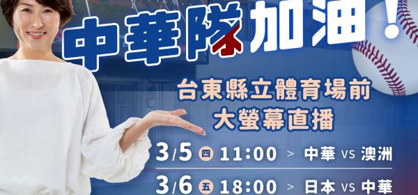 2026經典賽熱血開打台東體育場四場次大螢幕直播 饒慶鈴縣長邀您為中華隊及台東子弟加油!