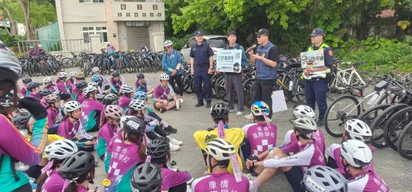 康橋國際學校單車環臺活動 玉警前進休息站強化防詐與交通安全