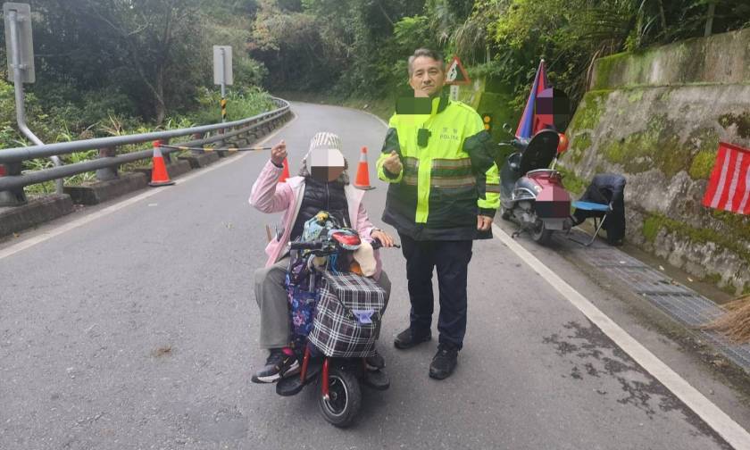 家住在苗栗縣66歲,右腳截肢領有身心障礙手冊的張姓阿嬤,於去(113)年12月31日騎行電動醫療代步車,搭乘火車前往臺東縣池上鄉住宿一晚,並於昨(1)日一早由池上出發,一圓前往南橫山區賞景的夢想。午後抵達霧鹿天龍吊橋休憩,約於15時30分欲下山時,眼看天候不佳,且山區開始起霧,遂至臺東縣警察局關山分局霧鹿派出所請求協助,因為181K路段工程道路管制,須至17時才可通行。所長胡松俊仁考量電動醫療代步車照明效果不佳,隨即前往聯繫工程管制人員協助放行。胡松所長還貼心地一路陪同阿嬤至安全道路, 阿嬤感動的握著所長的手,一再致謝。所長也溫馨提醒阿嬤,電動醫療代步車等同行人,務必靠邊騎行以策安全。阿嬤跟所長及管制人員道謝後,開心圓夢並踏上歸途。