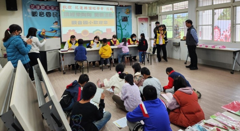 嶄新的一年開始之際,花蓮縣觀音國小迎接讀經行動列車到來,3日在花蓮縣讀經學會簡文清理事長、吳甜妹總幹事及志工老師們的帶領下!全校學生們展現出平時閱讀經典的累積成果,在朗朗的讀經聲中通過關卡兌換獎品,給學生留下美好的回憶!