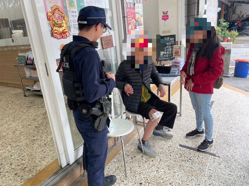 警方第一時間通知救護人員到場協助,並在場安撫陳翁的情緒,同時迅速的查詢到陳翁的住所,經過救護人員細心檢視傷勢並完成包紮後,確認陳翁僅因跌倒受到些擦傷外,身體並無大礙,隨後由警方將其平安護送返家,並與家屬詳細說明情況。陳翁及其家人對警方積極且妥善的協助深表感謝,並讚許警方的溫暖可靠。