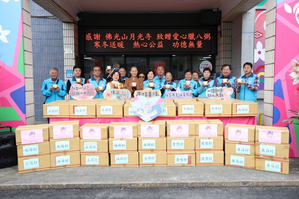 吉安鄉公所也安排、聯繫了各村村長、社區福氣站,前來領取月光寺的暖心臘八粥,把這份溫暖延續分送到各村鄰的鄉親。其中勝安村長陳羿華表示,他會把臘八粥帶到社區福氣站以及社區內的家戶中給銀髮族老大人享用,而這樣用一碗粥分享幸福的感覺,與平日的村長服務工作雖然很不一樣但同樣很有成就感。佛光會的督導張俊明則指出,今年總計發送17729份粥,北區鄉鎮分會共動員200位志工齊聚月光寺,清早五點許,由妙勳法師帶領大家誦唸「心經」迴向,隨即起鍋,所有人在過程中默唸經文,希望共享臘八粥的鄉親們都能福慧圓滿。