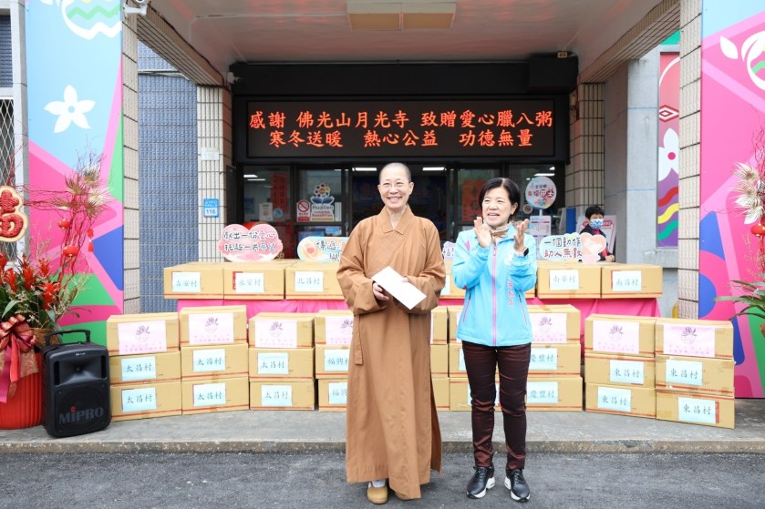 妙勳法師在現場表示,月光寺坐落「吉祥又安康」的吉安鄉是一份福報善緣,希望透過臘月初八佛陀成道紀念日,把蘊含祝福的營養臘八粥分享給大家,尤其食材選用芋頭、紅棗,寓意「『遇』見佛陀、『找』到幸福」。另外,妙勳法師也特別感謝長期以來游淑貞鄉長來對月光寺的關心,還有村長們與鄉公所一起眾力攜手傳愛送暖,讓佛教的大愛在吉安有更溫暖的延伸。