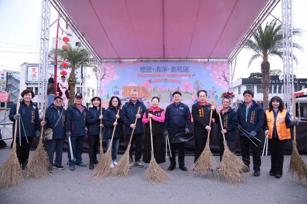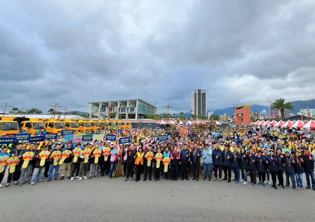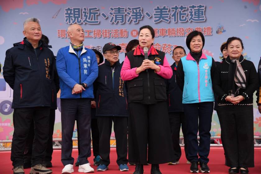 花蓮縣政府今(11)日於東大門夜市六期重劃區舉辦「親近、清淨、美花蓮 環保掃街暨清運車輛撥交典禮」,縣長徐榛蔚偕立委傅崐萁親自帶領1,000名環保志工於東大門夜市、日出大道、重慶市場週邊進行掃街活動,一齊為花蓮環境盡一份心,帶給大家清淨美麗的花蓮。