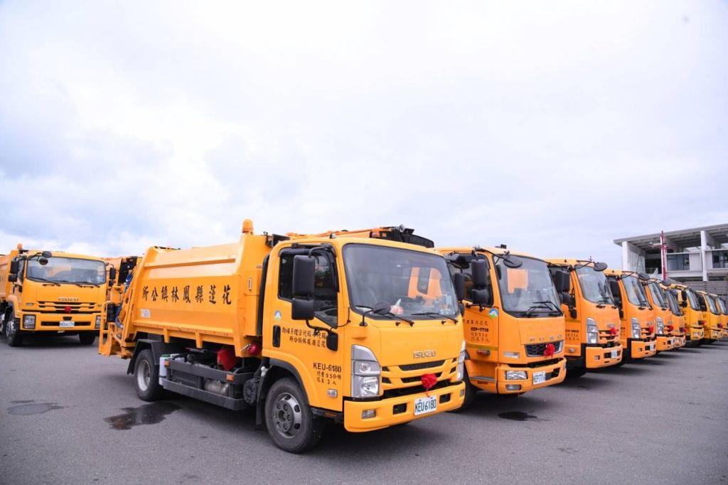 花蓮縣長徐榛蔚表示,為協助汰換花蓮縣老舊、耗損嚴重之清潔機具,花蓮縣政府積極向環境部爭取換購低碳垃圾車、低污染資源回收車及特種機具計畫補助,以保障清潔同仁執勤安全,充實花蓮縣清潔量能。113年度補助花蓮縣13鄉鎮市公所採購共計47台清運機具,其中低碳垃圾車補助26輛、資源回收車9輛、特種機具如抓斗車、挖土機、鏟裝機等共12輛,全面提升各鄉鎮市公所清潔隊環境維護效能。