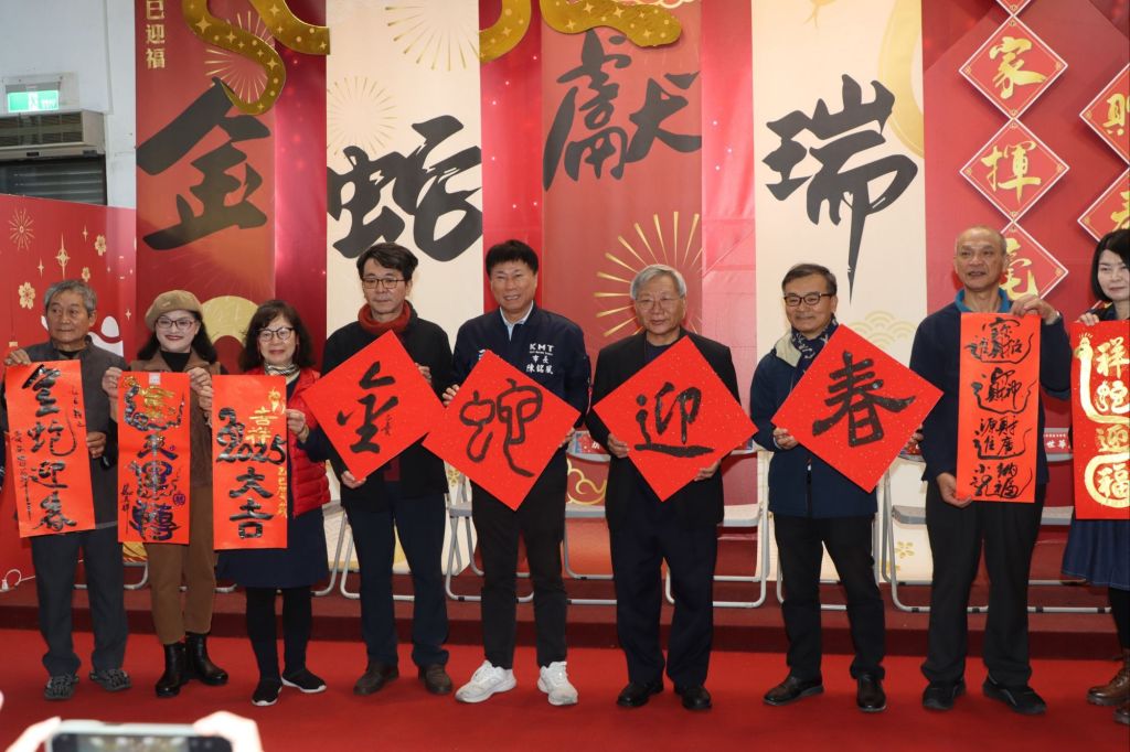 為迎接114年農曆新春,臺東市公所今(15)日在一樓藝文中庭舉辦「2025乙巳迎福~金蛇獻瑞名家揮毫贈春聯活動」開幕式,現場眾師雲集,多位名書法家親臨現場揮毫,為市民客製化專屬春聯,市長陳銘風親自書寫「蛇」字,祝福大家金蛇迎春,新的一年萬事順利,蛇麼都好。