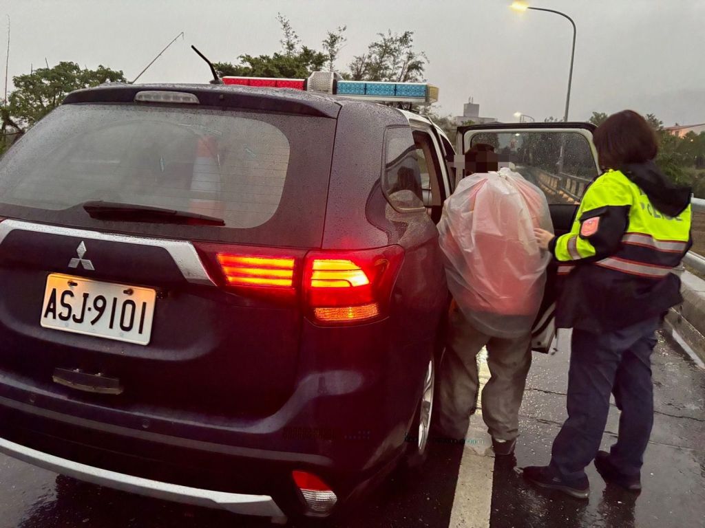 冷冽的寒風吹拂挾帶綿綿雨勢,近期氣溫不斷驟降,尤其在花東縱谷的民眾格外感同身受,惟警察執勤日夜不間斷,仍然守護轄內之治安與交通,花蓮縣警察局玉里分局富里分駐所所長余岸霖、警員林琪婷日前下午17時執行交通稽查勤務,行經富池橋發現一名老翁披著薄薄的雨衣提著一袋物品,步履蹣跚行走,雨衣難以抵擋肆虐的寒意,2名同仁於心不忍,立即上前協助。