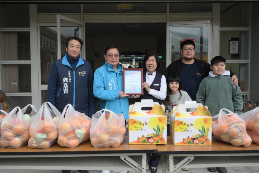 日前松成號國際有限公司董事長廖美燕和總經理魏子傑等人到訪花蓮市清潔隊部,捐贈750斤來自壽豐鄉樹湖的OK橙,讓辛苦工作的隊員能一起享受年節氣氛。清潔隊長吳慶展代表市長魏嘉彥頒贈感謝狀,縣議員魏嘉賢也特別到場,共同關心慰勞清潔人員。
