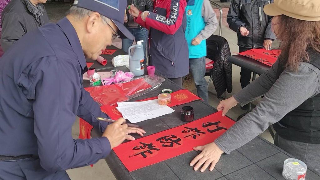 臺東縣警察局關山分局鹿野分駐所所長陳泰山,研習書法已有超過40年以上的資歷,於1月18日受鹿野鄉「崑慈堂」主委陳建光盛情邀請,9時在廣場前與多位書法大師同場揮毫,書寫春聯免費贈民,讓民眾在農曆年前「除舊佈新」。此堂還發送給約200位長者千元紅包拜早年,現場好不熱鬧。陳所長也率同分局偵查隊、交通組及該所員警,於舞臺上宣講「114年加強重要節日安全維護工作」、「酒駕零容忍」及「打詐儀錶板」,祝福大家新年快樂、萬事如意!