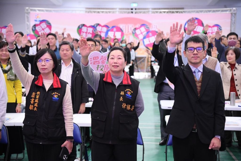 縣長徐榛蔚感謝全體校長的辛勞,她強調教育是百年大計,縣府是校長們最堅實的靠山,從前縣長傅崐萁時期的擘劃與遠見,推動包括小論文競賽在內的創新教育計畫,至今縣府透過提升校園設施設備、推動師資培訓及智慧教育等多元措施,持續深耕教育發展。在新任校長接任學校時,縣府提供專案經費作為支援,期望校長能善用資源,為校園注入新氣象,共同開創花蓮教育新局面。