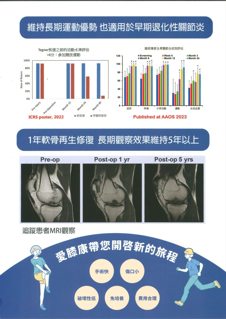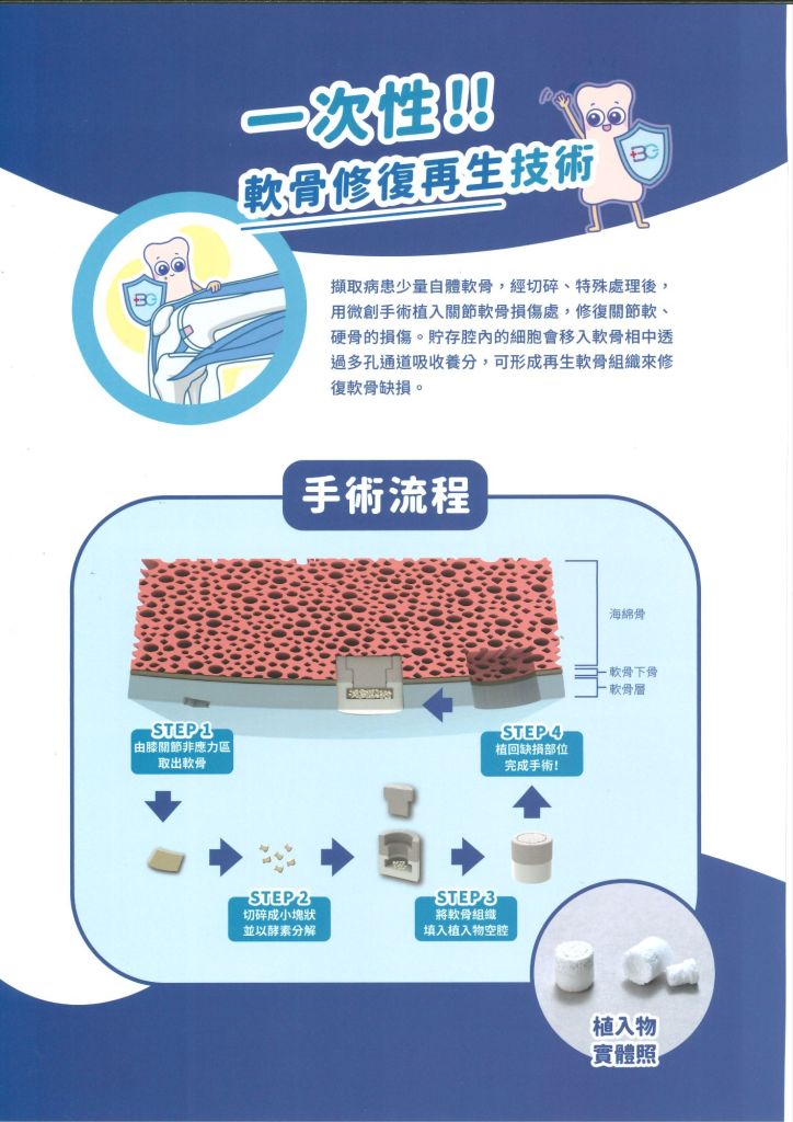 這項技術的核心在於採用患者自身健康的軟骨細胞修補受損部位,不僅降低排斥風險,還能保留膝蓋的原始結構與功能。相較於人工關節置換,它更自然且具長期穩定性,並已獲國際醫學期刊支持,臨床成效受到廣泛認可。