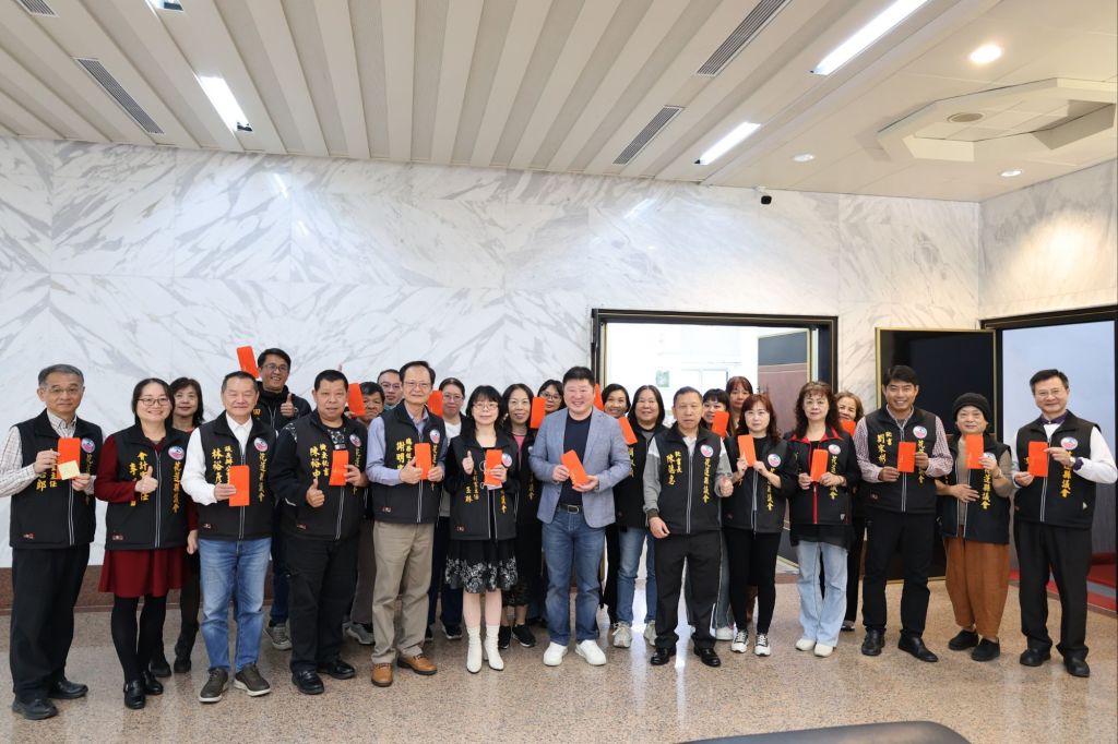 在發放紅包的同時,張峻議長祝福大家新年快樂,並鼓勵同仁在即將到來的蛇年中好運連連。員工們收到紅包時,紛紛嶄露欣喜的笑顏,爭相與議長合影,現場氣氛溫馨且愉快,充滿了新年的喜慶氛圍。張峻議長也向全體同仁獻上新年祝福的話語。