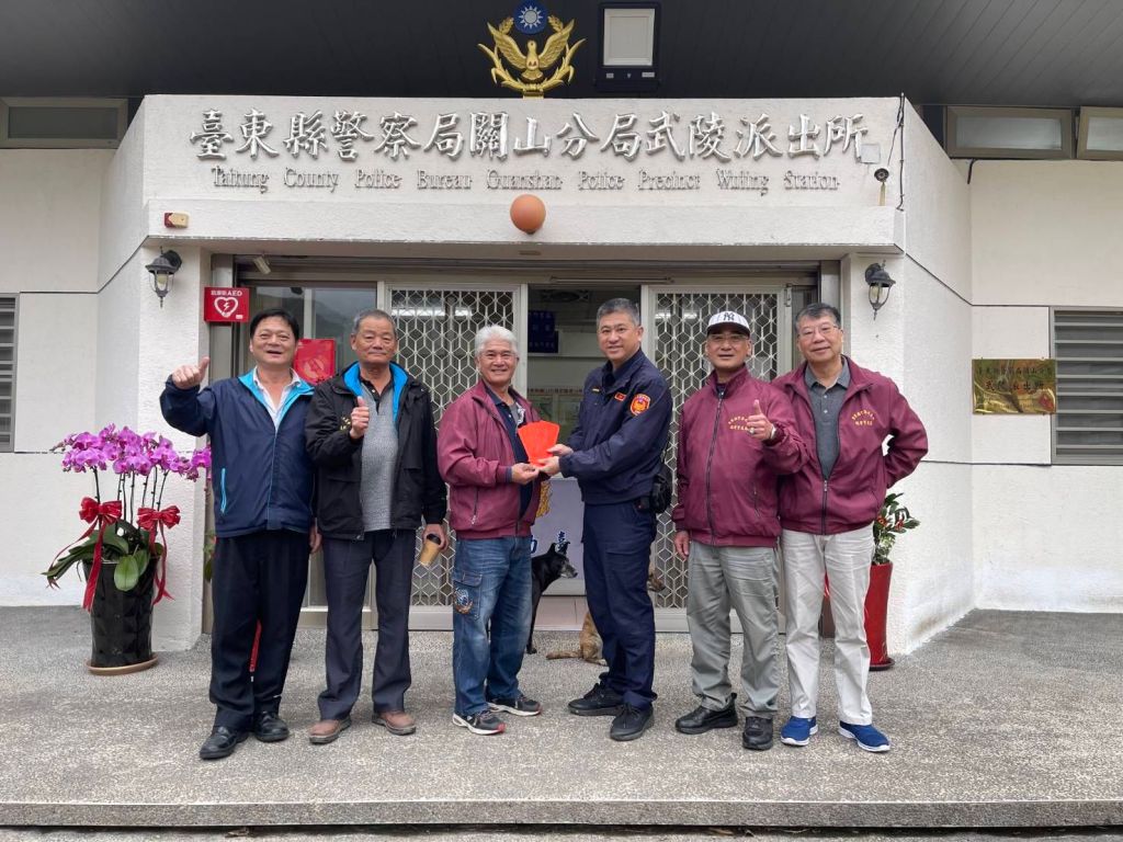 隨著農曆春節腳步近了,氣溫也隨之降低,臺東縣警察之友會關山辦事處瑞豐警友站長潘金來,有感於員警犧牲春節假期,頂著寒風細雨執行勤務,遂於今(27)日10時許,偕同榮譽站長趙双路、幹事林文龍、顧問陳鴻銘及曾春聲等人,依序前往關山警分局南線(延平、武陵、瑞豐、瑞源、鸞山及鹿野所)6所實施慰問,受到各所員警熱情的接待,感謝警友們長期的支持,讓同仁倍感溫馨,也請警友們協助警察宣導防詐及交安,延伸保障民眾生命財產安全的觸角及量能。