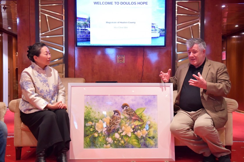 徐縣長進一步說明,此次特別贈送馬筱媛女士的畫作,不僅希望展現花蓮藝術家的創作實力,更期盼藉由「望僕號」,讓花蓮的文化與藝術被世界看見,展現花蓮「平凡中見偉大」的藝術精神,透過國際交流,讓更多人認識花蓮的美好。