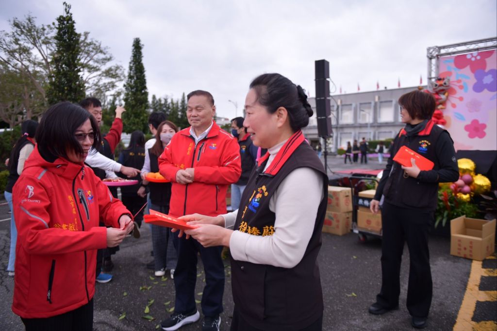 現場縣長徐榛蔚、副縣長顏新章、秘書長饒忠親手發送開運福袋、福橘、喜糖,祝福所有同仁開工大吉,祝願縣府團隊能持續齊心協力,為花蓮締造更加繁榮美好的未來。