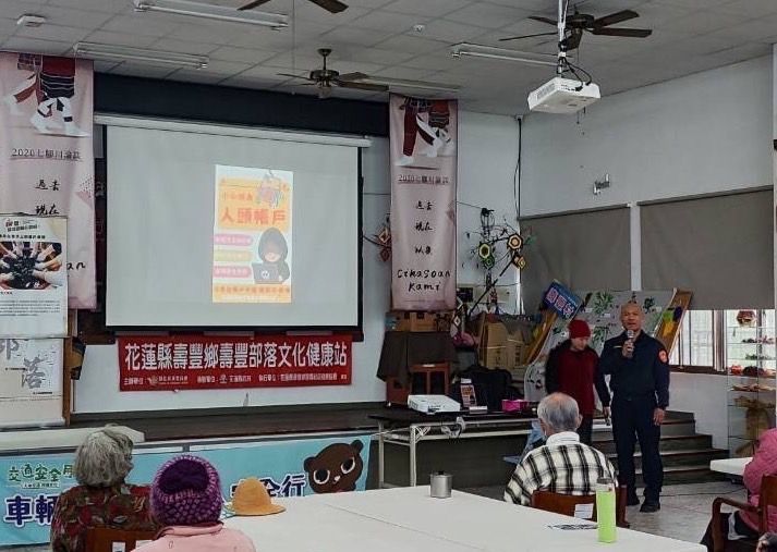 花蓮縣警察局吉安分局壽豐分駐所於114年2月5日上午在壽豐部落文化健康站舉辦「反詐騙、交通、婦幼」等安全宣導活動,由所長田道明及警員蔡泓諒等人向民眾說明近期詐騙手法、交通安全法規及婦幼相關議題。透過生動案例與實務經驗分享,幫助社區民眾提升防詐意識,避免落入詐騙陷阱,也加強對交通安全、婦幼保護及外籍人士權益的重視。