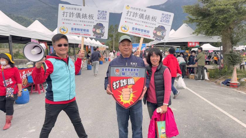 因應日益猖獗的詐騙案件,臺東縣警察局關山分局近日推出創新宣導措施,結合科技與實體宣導,設計「打詐儀錶板」QR-code大型手舉牌及黏貼板,「大型手舉牌」於大型活動時,置放於攤位前,或由員警以手舉方式,主動走入人群,便於民眾掃碼;「黏貼版」黏貼於各分駐(派出)所值班臺前、金融機構、超商櫃檯及ATM旁等民眾常接觸的地點,還製作宣導短片,運用參與各社區及部落治安會議時機播放,期望以多元方式提升民眾防詐騙意識,守護民眾財產安全。