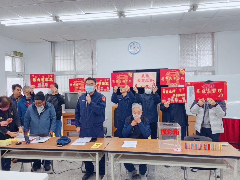 臺東警分局除逐一走訪所有參加廟宇陣頭,向負責人與成員告誡約制,各隊伍應遵守主辦方天后宮訂定公約,且參與團體及成員在熱鬧活動中,也應遵守相關交通法令。另外分局長陳宏平於今(9)日10時許率領幹部至臺東天后宮參加遶境隊伍號次抽籤會議,宣導各隊伍負責人應約束參與成員遵守活動秩序高度自主管理,不糾眾鬥毆、不影響交通,不得有暴力等不理性行為,若有衝突發生警方將會以優勢警力強力壓制,依法嚴辦。