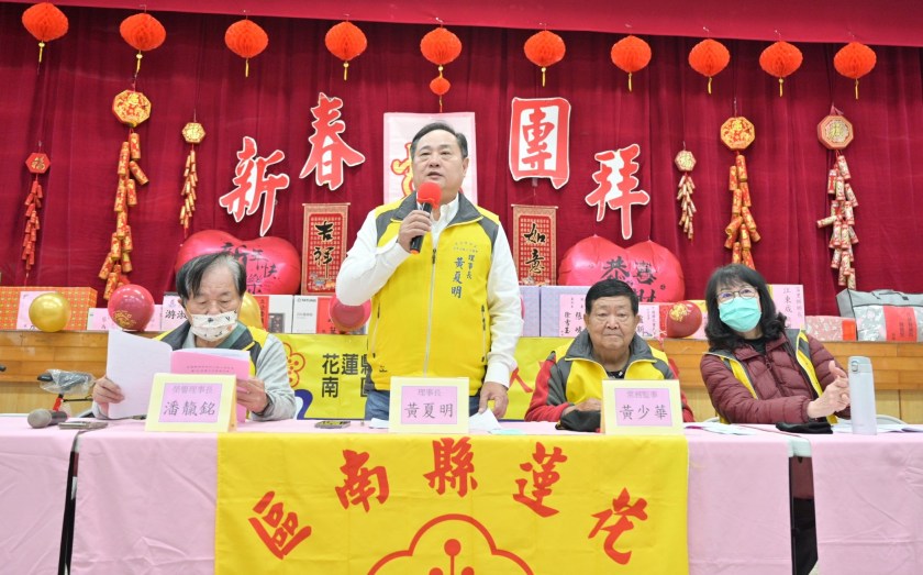 南區退休公教人員協會理事長黃夏明感謝傅崑萁立委玉里服務處潘俊霖主任、縣議員鍾素政、吉安鄉公所游淑貞鄉長、玉里鎮公所詹秀蔥秘書、玉溪地區農會葉朝輝主任、東台灣記者協會楊金明理事長、吳新文代表及國武里陳玉蘭里長等來賓蒞臨現場給予新春祝福,並感謝各機關單位致贈摸彩品,提供參加者摸彩活動,增添熱鬧氣氛。