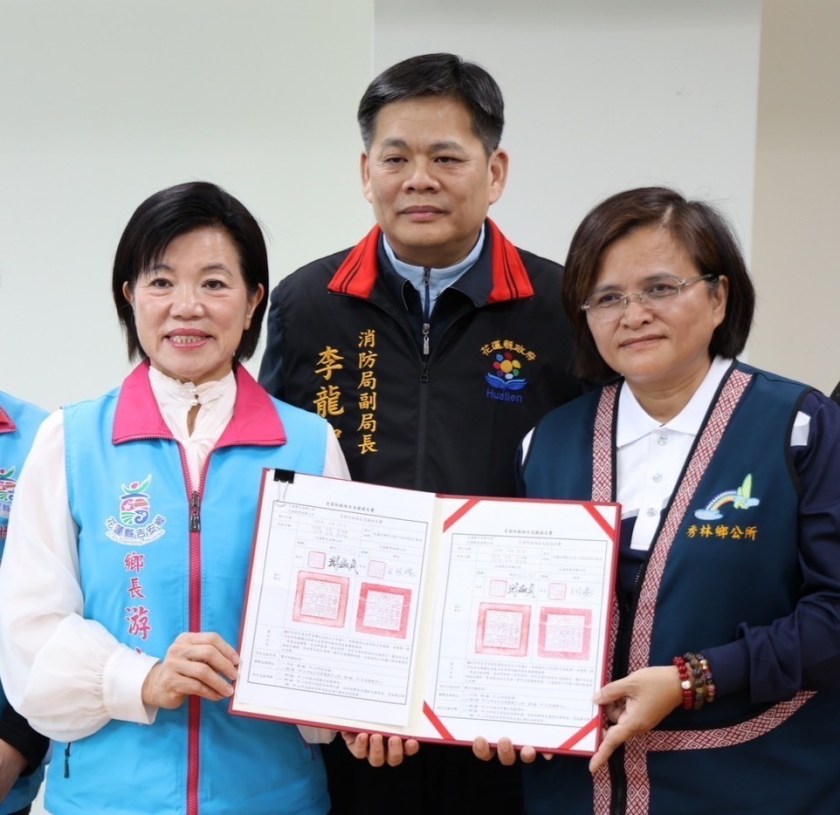 簽署儀式在花蓮縣消防局副局長李龍聖見證下,由吉安鄉長游淑貞、秀林鄉長王玫瑰親自出席共同簽訂,未來兩鄉將攜手推動防救災資源共享、避難收容所互助以及資訊化防災系統,確保在災害發生時,能迅速動員資源,守護鄉親生命與財產安全。另「國立東華大學強韌臺灣防災團隊」、「水患自主防災社區」、「在地防災士」,以及吉安鄉仁和村長陳淑美、福興村長黃駿緯,秀林鄉銅門村長葉清賢、水源村長洪明輝、文蘭村長田文才等,近百位關心地方災防的專業人士也共同前來見證,顯示這項合作形成更完整的互助式防救災網絡,有效提升花蓮縣的整體防災韌性防護。