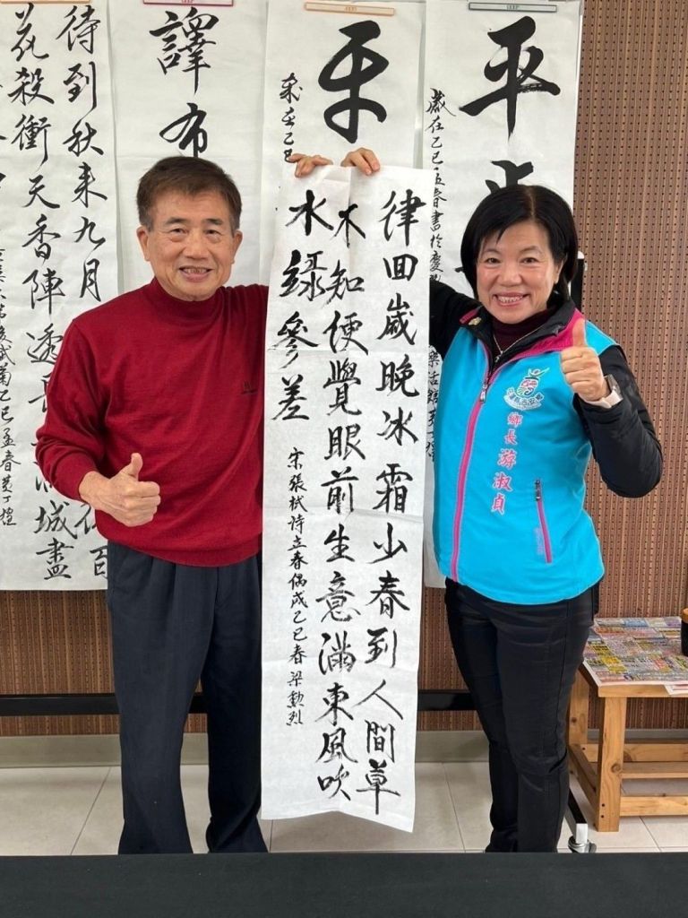 花蓮縣書法學會前理事長黃丁煌校長,在這幾年來無償式默默地跟大家分享書寫經驗及傳承,學員們本著活到老學到老的精神共學,其中有資深級的書法名師、也有退休後初學的學生,大家互相交流彼此分享學習經驗,也在這兒找到了退休後的新生命。黃校長打開話夾子敘說當年,當大家找不到一個聚集學習教室時,就找游淑貞議員幫忙,驚訝!短短一周就安排在慶豐樂活銀髮館順利開課至今,近七年來游淑貞無論是議員或是鄉長都會不定期地前來關心,這次辦理的慶豐銀髮族書法推廣研習,也是在她的協助下促成,希望有更多的退休銀髮長者,透過書法運筆、手眼協調控筆、刺激美學感官,除帶來學習樂趣之外更能延緩老化,樂活學習在吉安,歡迎大家報名免費共學!