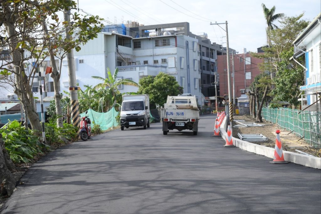 拓寬工程原定於3月中旬完工,目前進度超前,已逾百分之70,預計在月底連續假期前便能夠正式開放通行。此案施作路段範圍由十六股大道至豐村路交叉口,全長205公尺,改善後路幅可達五至六米,也預留空間新設排水溝,同時解決積淹水問題。
