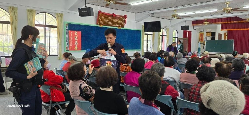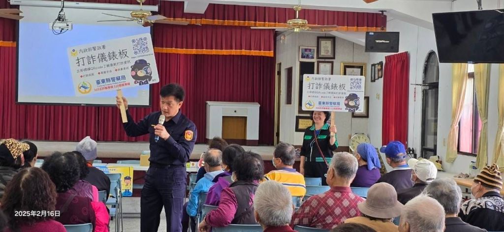 臺東縣關山鎮里壠社區發展協會於今(16)日10時,假社區活動中心舉辦「114年度第10屆第2次會員大會」,計有約150名社區長者踴躍參與。另議員陳宏宗助理黃玉芩及關山鎮代表會副主席李偉鈺,也列席與會傾聽民意。此協會理事長林葦君為提升社區居民的交通安全意識與防詐騙知能,特邀請臺東縣警察局關山分局交通組巡佐林張仲康及關山聯合所警員胡元弘、吳佩芝及羅薇薇,至會場發送銀髮族交通安全手冊、反光拍拍圈及宣講防詐利器「打詐儀錶板」,並透過實際案例加深民眾印象,以確保大家生命財產安全。