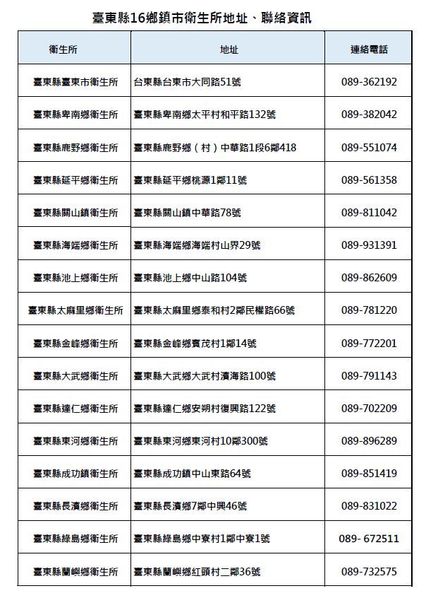 臺東縣衛生局表示,此次公費增購流感疫苗接種開放給原第一階段對象施打,包括65歲以上者、55歲以上原住民、安養/長期照顧(服務)等機構對象、滿6個月以上至國小入學前幼兒、具潛在疾病者(含高風險慢性病人、BMI≧30者、罕病及重大傷病患者)、孕婦、6個月內嬰兒之父母、醫事及衛生防疫相關人員、國小至高中/職/五專三年級學生、幼兒園及居家托育人員、禽畜及動物防疫相關人員。