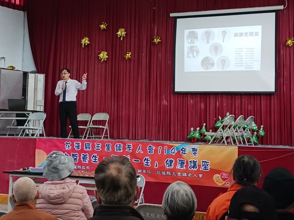 為加強社區民眾對健康醫療的認識,臺北榮民總醫院玉里分院陳育群副院長於日前受玉里鎮老人會理事長楊淑玲邀請,至老人館進行社區健康醫療宣講,分享醫療資源動態與智慧健康管理新趨勢。