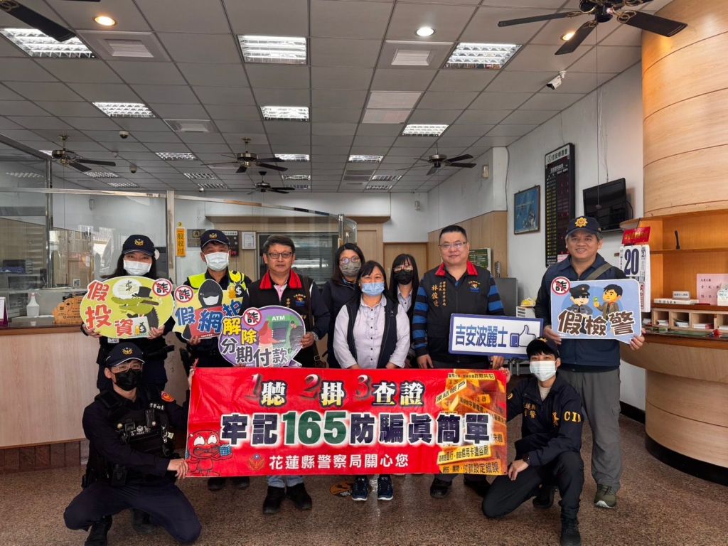 近來詐騙手法層出不窮,其中有關「地面師」詐騙在近期更是甚囂塵上,詐騙集團以投資等名義,誆騙民眾將不動產抵押貸款,投入虛假投資標的,最終導致財產嚴重損失,甚至失去房產,讓受害者一生心血毀於一旦。為防止民眾落入詐騙陷阱,花蓮縣警察局吉安分局長林俊廷親自率領偵查隊與派出所,前往轄內金融機構,進行防詐宣導,強化識詐意識。