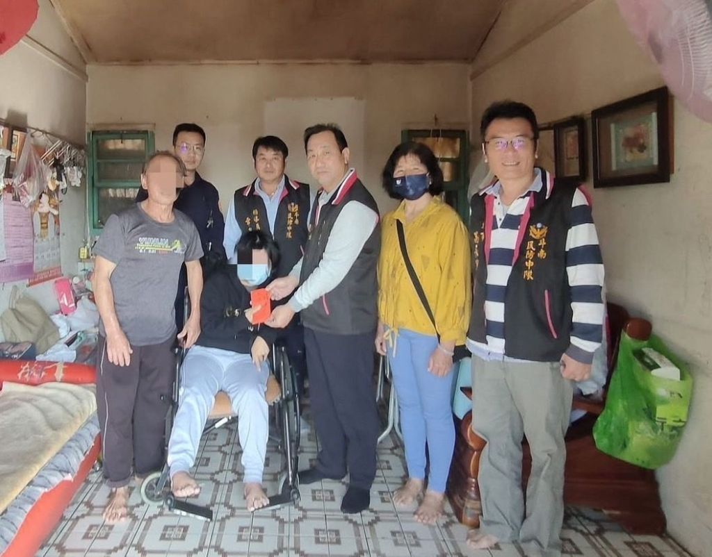 雲林縣警察局斗南分局四維派出所警員林于揚接獲所內志工轉報,轄內蒲姓里民為低收入戶,長期照顧罹患重度腦性麻痺的太太而無法工作賺錢,只倚靠微薄的社會救助金度日,育有一名就學中的女兒,經濟陷入困境需要協助,所長曾耀慶與警員林于揚訪查後,協助蒲民申請斗南鎮公所急難救助、張榮發基金會及斗南民防中隊慈善團體給予協助,盼能幫助這家人度過難關。