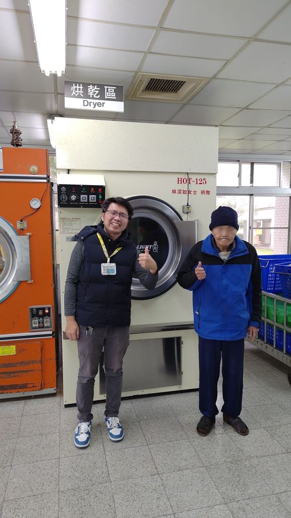 祥和院區原就設有烘乾機,但因玉里地區氣候濕冷,特別是節氣變化時,衣物更加不易乾燥,加上住民數量多、使用頻繁,林女士探望安置在此院區的弟弟時得知原先的烘衣機工作量甚鉅,於是貼心地與醫院社服基金承辦人員莊福元社工師聯絡,表示有捐贈大型烘衣機意願,她的善舉不僅讓弟弟生活更加舒適,也讓其他住民受惠,體現了林女士對玉里醫院及其弟的深厚情誼。