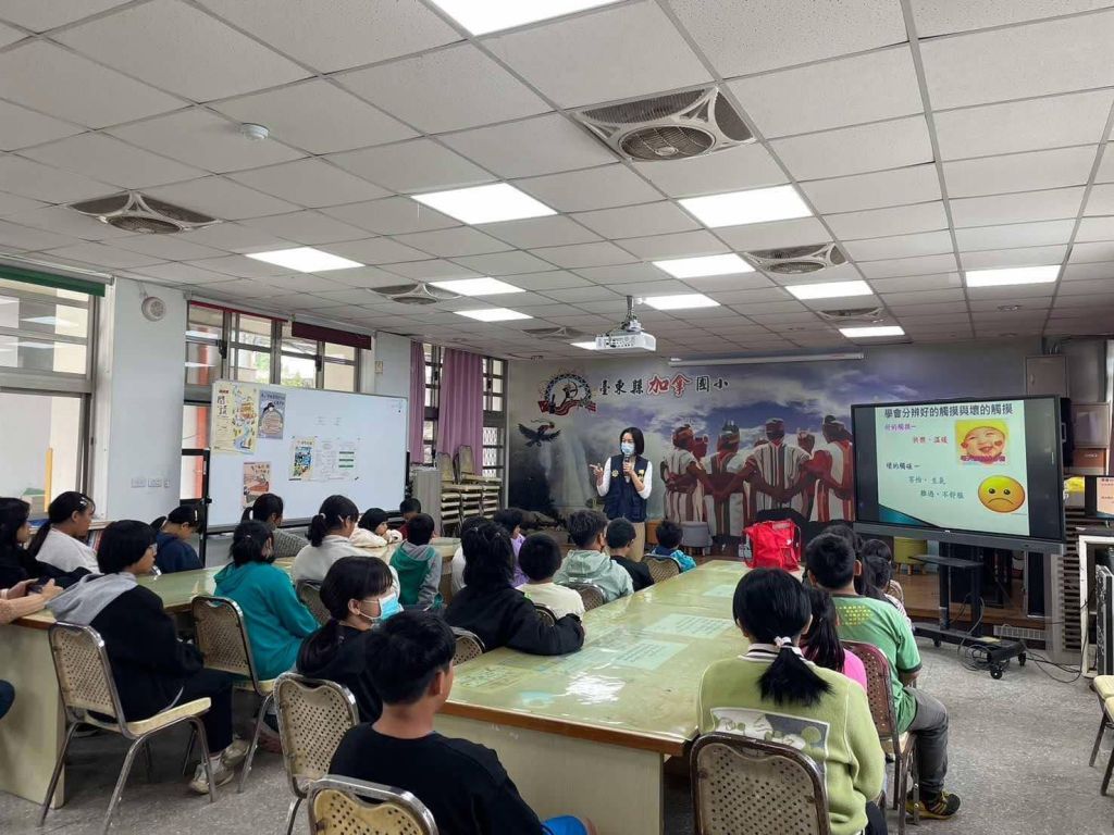 臺東縣警察局婦幼警察隊校園巡迴宣導列車於日前至關山鎮加拿國小宣導,宣導團隊藉由巡迴方式將婦幼保護相關法令及反詐騙觀念融入校園,增進學童和教師們對法令認識,培養自我保護能力並提高警覺做好事前防範,在面臨危險情境或疑似遭受詐騙時能以正確的方式來求救,配合有獎徵答及互動式問答,深受學校師生肯定。