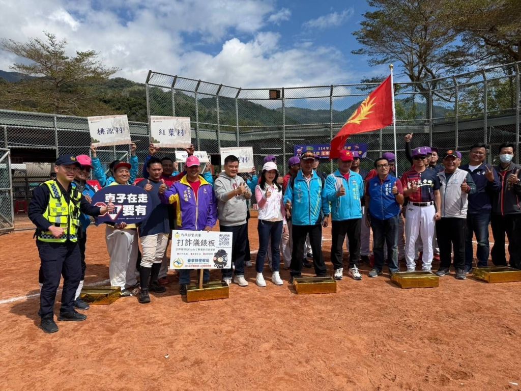 臺東縣延平鄉年度體育盛事「第24屆主席盃慢速壘球賽」於昨(28)日上午熱烈開賽,賽事不僅吸引地方球隊較勁,更成為警民聯防的重要宣講場域。臺東縣警察局關山分局延平分駐所所長張哲瑋率隊主動出擊,穿梭於選手休息區,手持大型QR-code「打詐儀錶板」(https://165dashboard.tw/)手舉牌,以創新互動形式強化民眾反詐意識,同時宣導交通安全三大重點:「不超速、酒駕零容忍、路口慢看停」,透過運動賽事拉近警民距離,獲得現場民眾熱烈響應。