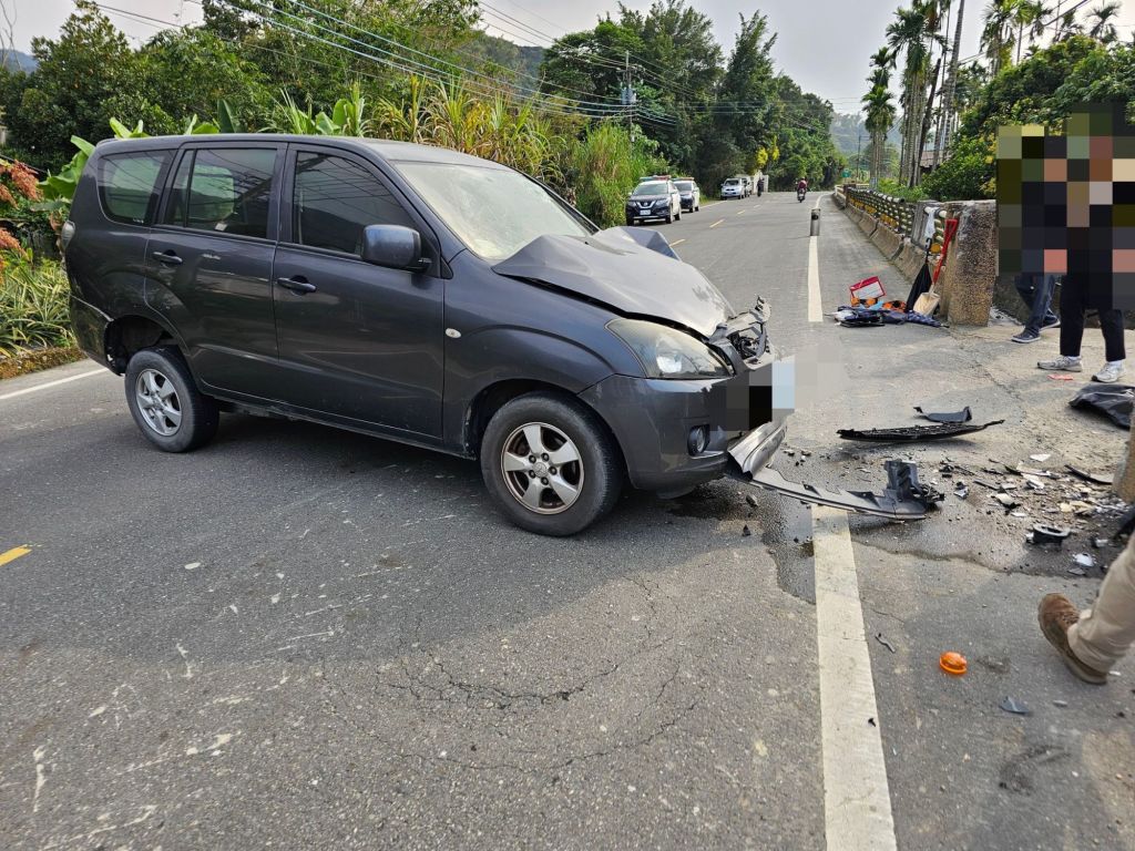 經了解,曾男(47歲)駕駛自小客車附載乘客馮男(14歲)由高樹鄉沿山公路一段南往北方向行駛,行經事故地點時,疑不明原因偏離車道逆向自撞對向護欄,駕駛曾男左手左腳擦挫傷,乘客馮男左手脫臼,二人均送醫救治,駕駛經酒測後酒測值未超標,此案里港警分局已依規定成案,並調查相關肇事原因。