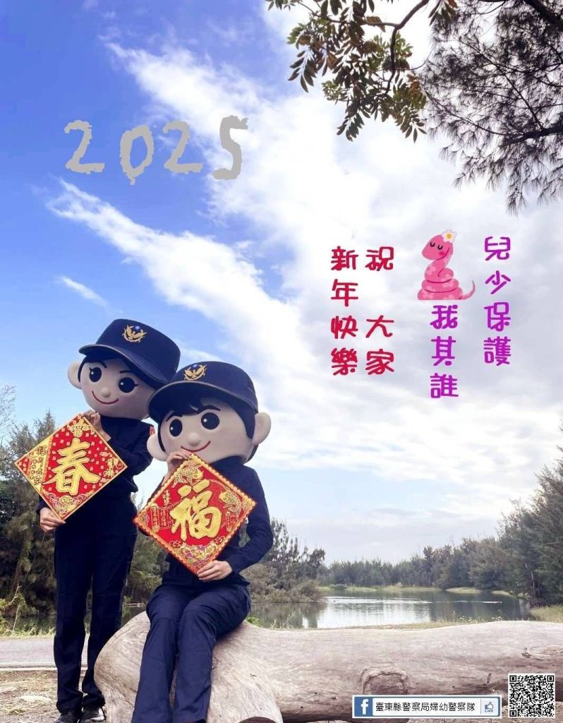 臺東縣警察局為擴大婦幼安全宣導效果,製作「婦幼月曆與你同行」宣導系列照片,自114年度起,每月於婦幼警察隊粉絲專頁進行分享,運用警察大頭寶寶結合臺東著名景點進行拍攝,搭配親民語彙,解說婦幼法令、自我保護或婦幼基本知識,內容包含認識家庭暴力、兒少保護、性侵害及性騷擾防治、兒少性剝削、跟蹤騷擾防制及杜絕數位性暴力等婦幼安全及識詐議題,透過臉書粉絲專頁分享,只需要短短的時間,即能獲得婦幼保護相關法令及自我保護知能,歡迎大家一起觀看並幫忙按讚加分享喔!