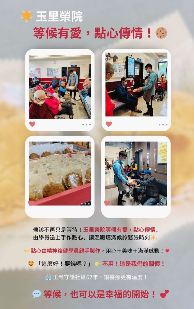 為提升候診民眾的舒適度,臺北榮民總醫院玉里分院 推出「暖心候診點心活動」試辦計畫,於平日中午時段提供免費點心,讓候診期間增添溫暖與陪伴,有助於改善空腹不適。
