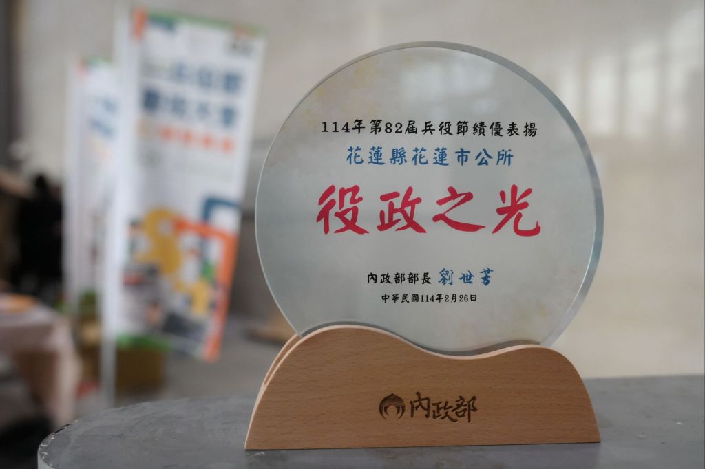 3月1日為兵役節,內政部為了表揚及獎勵推動兵役與動員業務之有功單位及人員,日前舉行114年「第82屆兵役節慶祝大會暨頒獎典禮」,共計表揚118個績優單位及學校、219位績優幹部與65位優秀役男,其中花蓮市公所獲績優役政單位,不僅是全縣唯一獲獎的單位,更連續四年、第七度獲此殊榮。而日前市公所也獲花蓮縣後備指揮部表揚後備軍人資料清查作業績優殊榮。