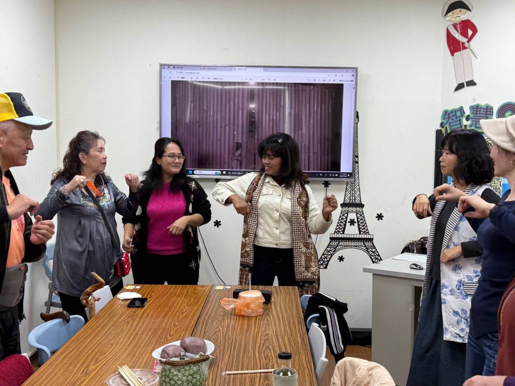 這次活動在服務站會議室舉行,首先由熙娣開場教導在場學員印尼舞蹈「Poco-Poco」,這是一首來自印尼北馬魯古特爾納特市的舞曲,具有「可愛、有趣」之意。剛開始大家的舞步有些彆扭,但是在老師的熱情與活潑地帶動下,大家也就逐漸熱絡的舞動起來。接著由美君簡報介紹印尼竹琴(ANGKLUNG)文化,並說明竹琴曾多次入選世界紀錄,在99年列入聯合國教科文組織(UNESCO)之文化遺產。傳統竹琴是由竹子所製成,音色清脆動人,然而,一首曲目的演奏必須要由7支不同音調的竹琴相互搭配才能完成。今日美君特地利用紙吸管讓學員DIY體驗製作印尼竹琴。雖然無聲,卻展現出樂器結構與環保愛地球的概念。大陸新住民林娟女士表示:謝謝兩位講師的精闢豐富的介紹與分享,讓她在輕鬆愉快的氣氛下初次體驗印尼的音樂與爪哇舞蹈文化,實在獲益良多!