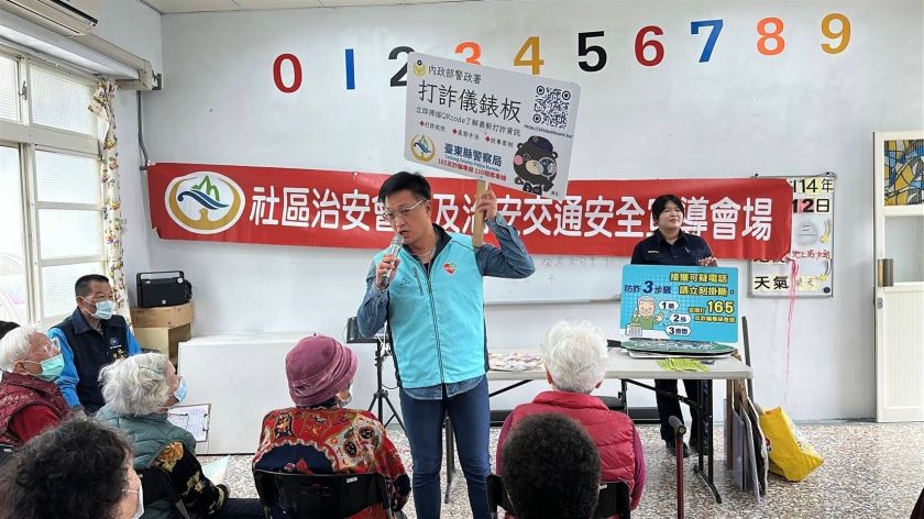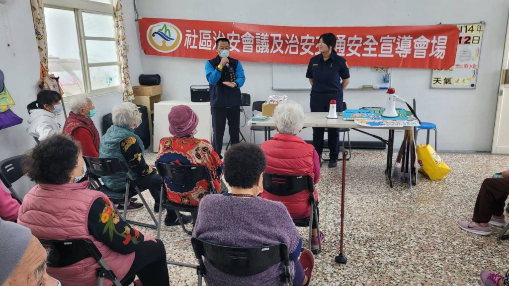 臺東縣警察局局長蔡燕明相當重視「社區警政」工作,強調警察應積極走入社區,傾聽民意、解決問題,並透過面對面宣導提升社區安全意識。關山警分局偵查隊魏子翔、交通組巡佐林張仲康、行政組警員胡大志及池上分駐所所長蔡欣妤、警員羅曉薇,於今(12)日9時,前往池上鄉福原村文化健康站參加社區治安會議,向村長劉亦松與在地居民進行交通安全及防詐騙宣講,並透過案例解析與有獎徵答的互動方式,讓民眾更深入了解詐騙手法與交通安全觀念,並現場回應民眾提問,強化社區治安意識。此次會議即是落實此理念的一環,藉由與居民的互動,加強民眾對防詐與交通安全的重視,共同營造安心的生活環境。