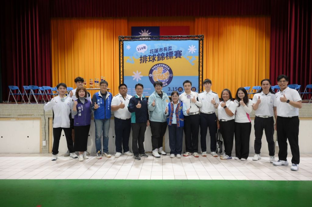 花蓮市114年市長盃排球錦標賽周末登場,匯聚42支隊伍約500名選手同場切磋球技,今(15)日上午在花蓮高工體育場舉行開幕典禮,市長魏嘉彥特別出席為比賽揭開序幕,他也期許藉由賽事鼓勵更多年輕學子與市民朋友投入排球運動,保持良好規律運動的習慣。