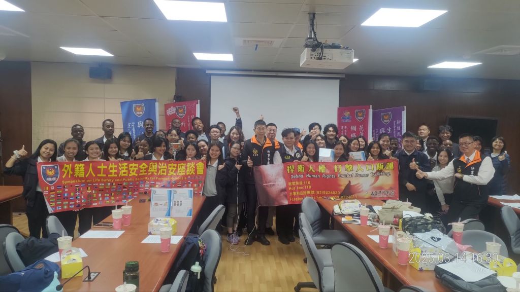 花蓮縣警察局長久以來重視轄內居留外僑及外籍學生人身安全議題,日前在慈濟大學全球事務處的邀請下,特於3月14日下午會同內政部移民署花蓮縣服務站假慈濟大學建國校區舉辦今(114)年第一場「外籍人士生活安全與治安座談會」,與此校外籍學生及師長逾70人進行雙向座談,由外事科科長陳奕彣及慈大全球事務長郭又銘共同主持,雙方並於座談會開場時互贈宣導品及結緣品留念。
