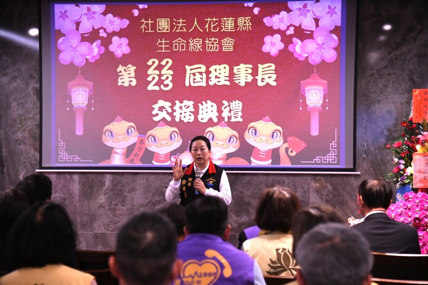 縣長徐榛蔚表示,生命線志工們24小時輪值,總是在最需要的時刻伸出援手,無論是心理輔導、自殺防治或緊急關懷,生命線始終堅守崗位,帶給無數人希望與力量。她回憶0402太魯閣事故發生時,警消人員不顧自身安危投入救援,縣府當時迅速啟動心理創傷輔導,並與生命線協會攜手提供完整的心理救護服務,讓辛勞的救難人員得到適切的情緒支持。