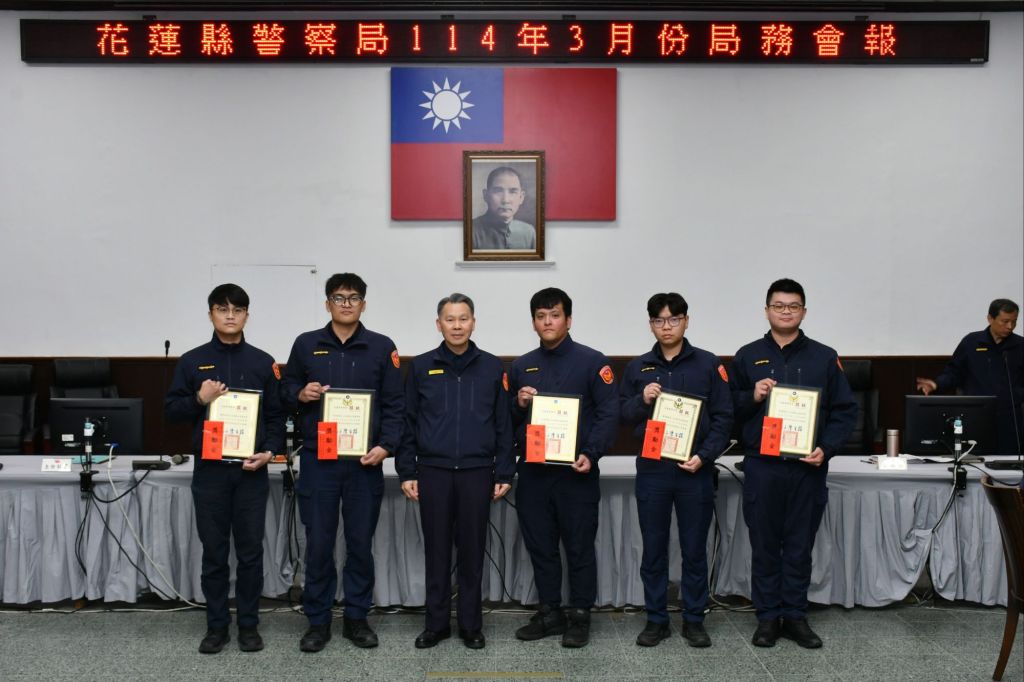 花蓮縣警察局局長陳百祿表示,此次2月份員警優良服務事蹟共計10員授獎,值得嘉許,透過局務會報表揚肯定上開績優員警的優秀表現,讓其他同仁標竿學習。