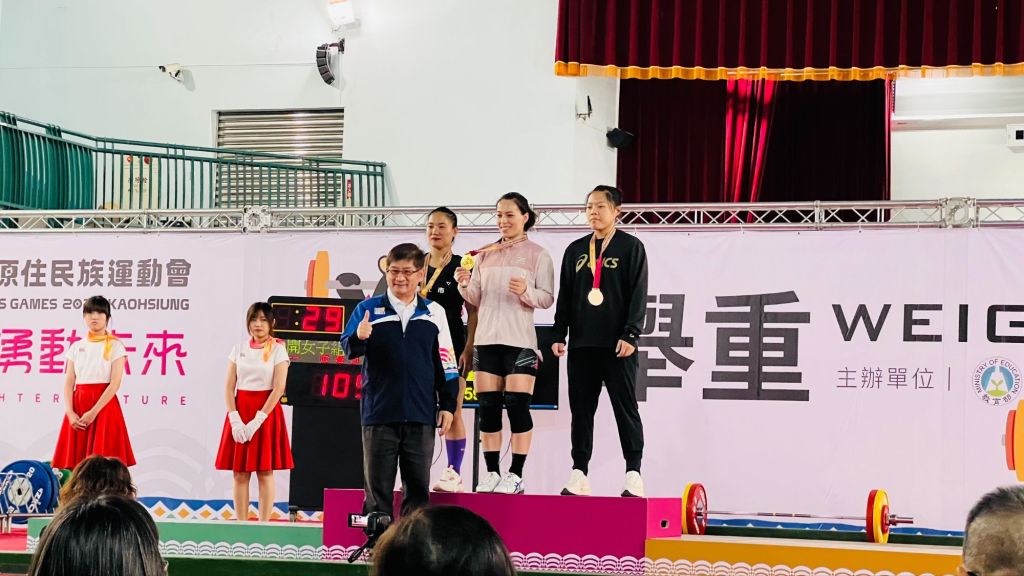 在高雄市舉行的114國原住民族運動會,台東縣代表隊今(22)日上午傳出捷報,「舉重女神」郭婞淳在舉重公開女子59公斤量級,以抓舉85公斤、挺舉105公斤、總和190公斤輕鬆摘金,也完成連霸業績,另外,在傳統鋸木項目公開男女混合組以10分26秒53成績勇奪冠軍,順利完成挑戰2連霸,目前台東縣代表隊已獲5面金牌在內的16面獎牌。