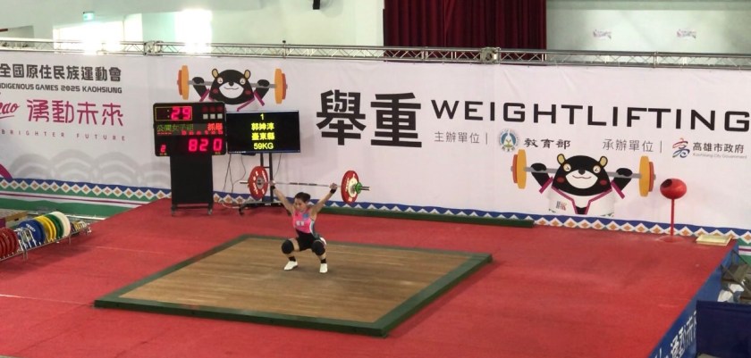 台東縣府教育處表示,114國原住民族運動會舉重項目今日在高雄市鼓山高中活動中心舉行第二日賽程,由於「舉重女神」郭婞淳代表台東縣出賽,現場有許多民眾及粉絲入場觀賽,以及吸引大批媒體前來採訪,台東縣代表隊也製作手牌到場加油助陣,郭婞淳這次以主項59公斤級參賽,抓舉部分順利舉出85公斤。接著挺舉項目,郭婞淳也輕鬆地舉起105公斤,並以總和190公斤收下金牌。