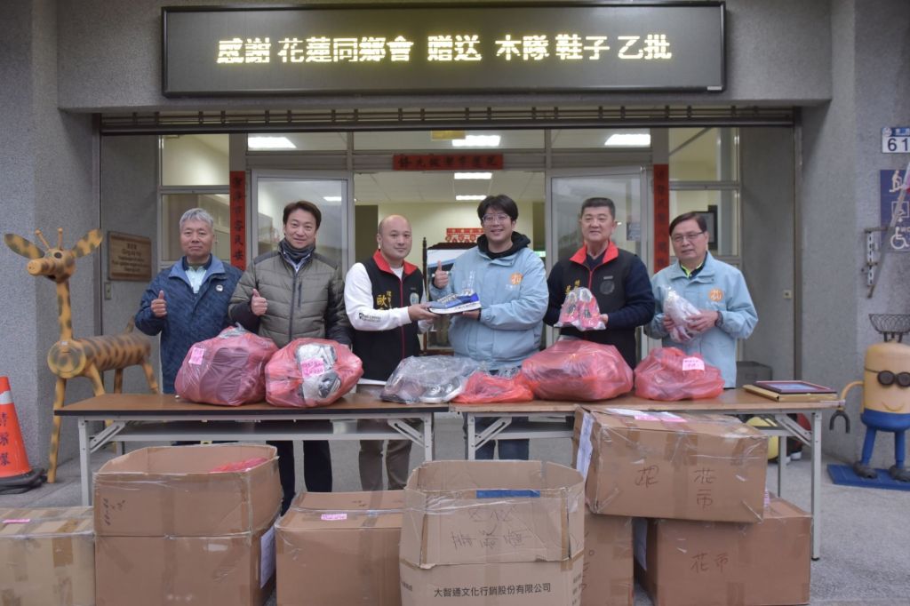 花蓮縣同鄉公益總會總幹事吳哲仲說,這批鞋子是由來自桃園的「社團法人台灣國際約瑟糧倉協會食物銀行」捐贈給同鄉會,他們總共捐贈了3000雙鞋子,由同鄉公益總會分批捐贈給花蓮縣的各鄉鎮市公所;這次經由與公益總會主要幹部討論後,決定轉送給清潔隊,主要是有些隊員經濟上較不寬裕,也有些隊員屬於安心上工補助對象,感謝魏市長的支持,讓公益總會一圓行善的信念,希望透過這次捐贈,表達對清潔隊員辛勞的感謝。