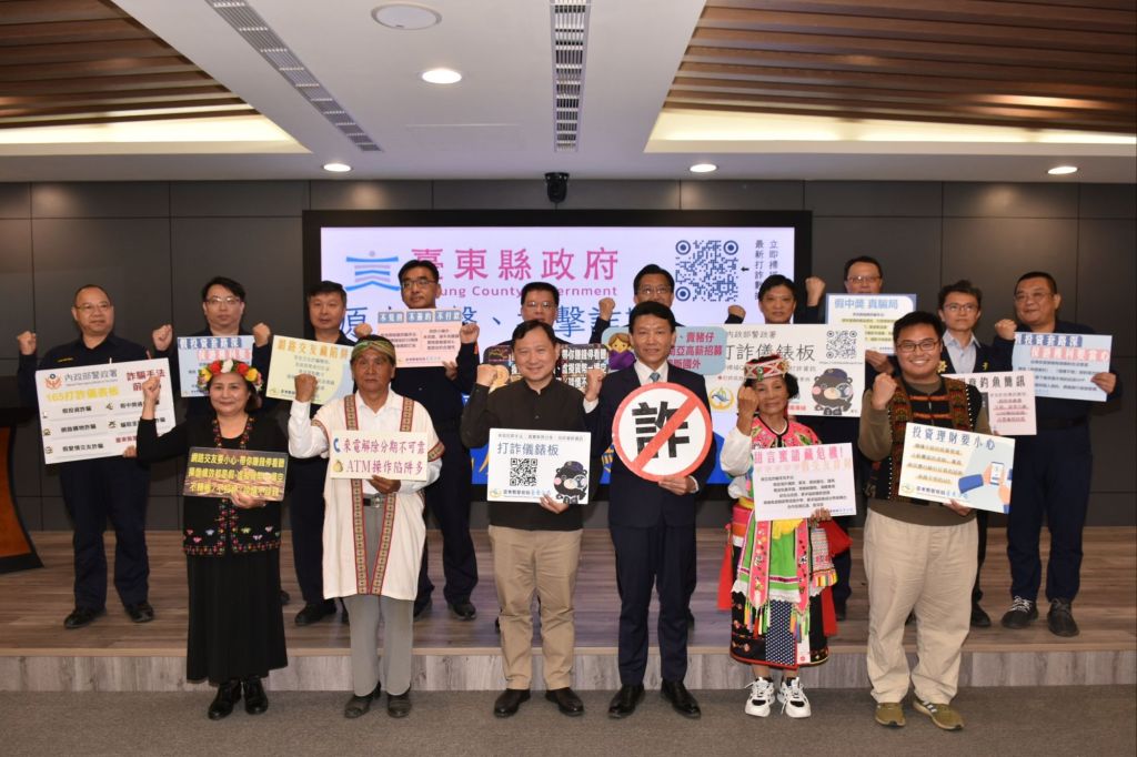 臺東縣政府為推廣內政部警政署165打詐儀錶板,並強化全民防詐意識,今(24)日上午10時由王志輝副縣長率警察局長蔡燕明,以及2位副局長、主任秘書、督察長、4位分局長、刑警大隊長及公關科長等,主持「原力出擊、打擊詐欺」記者會,向民眾說明2月份防詐欺現況及成效,特別邀請卑南族、阿美族、布農族及排灣族人以族語宣導反詐騙,加強族人反詐意識。