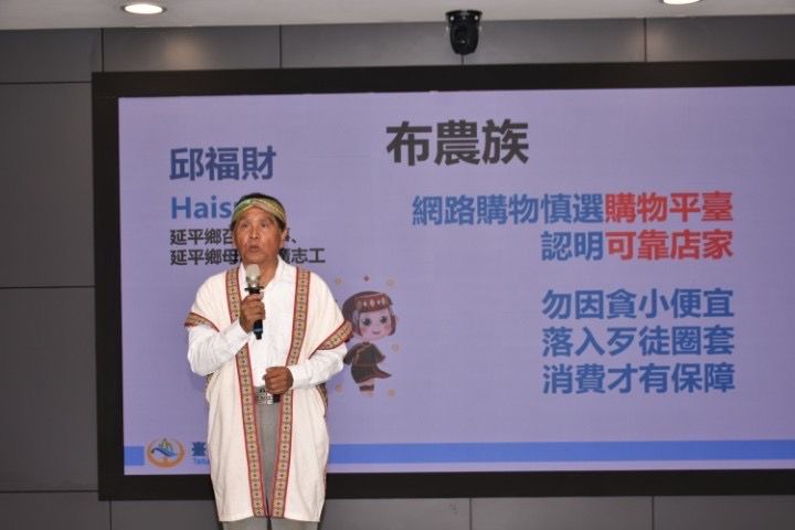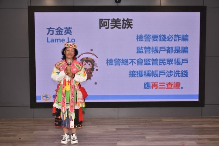 會中並由受邀的卑南族、阿美族、布農族及排灣族人身著原住民傳統服飾,以各族族語宣講「假投資」、「假網拍」、「假檢警」及「假交友」等4種高發詐欺手法,希望能透過各族語講述詐騙關鍵字之方式,降低族人遭詐騙機率。