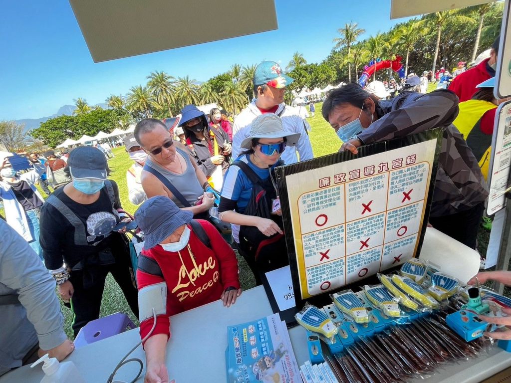 活動當日吸引約三千位民眾熱情響應,北榮玉里分院政風室利用此次大型活動機會辦理「擁廉拒貪.我最行」社會參與活動,並設計「廉政九宮格」小遊戲與民眾問答互動,內容涵蓋公務員廉政倫理規範、反賄選、反詐騙及消費者保護等主題;活動以寓教於樂的方式,向民眾普及反貪廉潔的知識,並為踴躍參與的民眾提供精美的宣導品作為獎勵,將「廉能政府、透明臺灣、誠信社會、廉潔家園」共識深植於民。